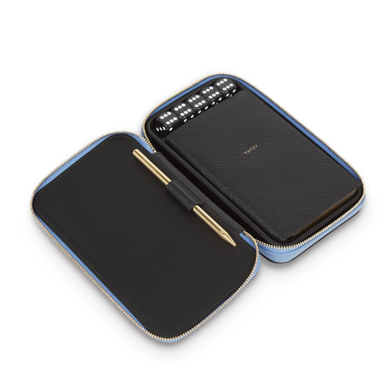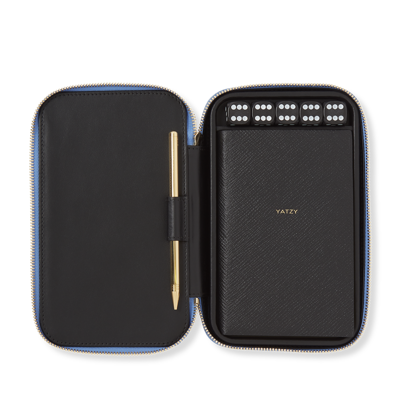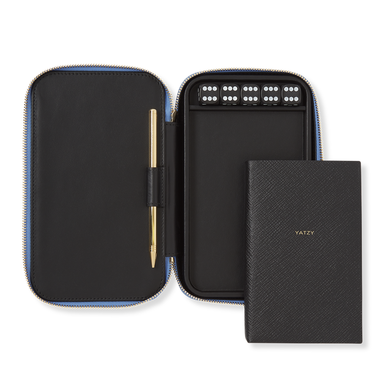 Game night, elevated. The Smythson Yatzy Set in Panama leather turns a casual classic into a travel-ready heirloom. Encased in the brand's signature cross-grain leather, this compact set includes five precision dice and score sheets—all neatly housed in a snap-fastening case that feels as good in hand as it looks on the table. Whether tucked into a weekend bag or displayed on a bookshelf, it's a quietly luxurious nod to old-fashioned fun, made with meticulous care in Italy.