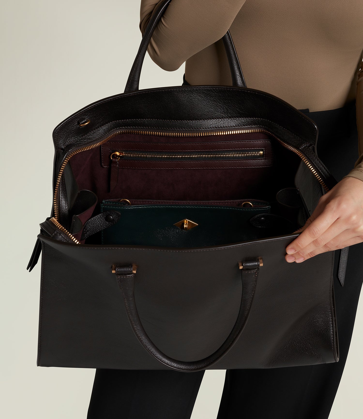 The perfect fusion between the Perriand All Day and the house-favorite Private Eye. The Private Eye Large is a sophisticated day bag for fuller days, fitted with with oversized proportions to double up as an elegant carry-on. Comes with the same signature features as the Private Eye, including the detachable interior pouch and adjustable shoulder strap.
