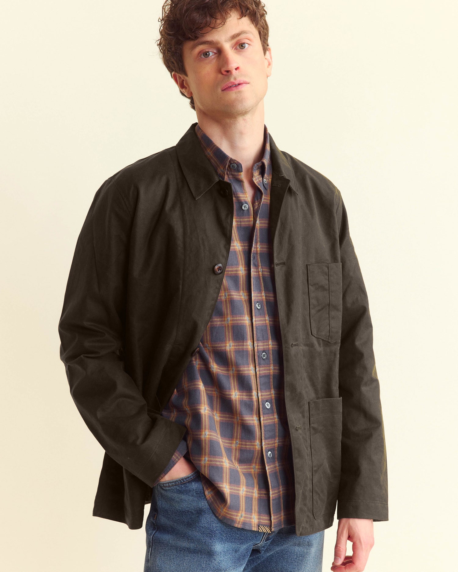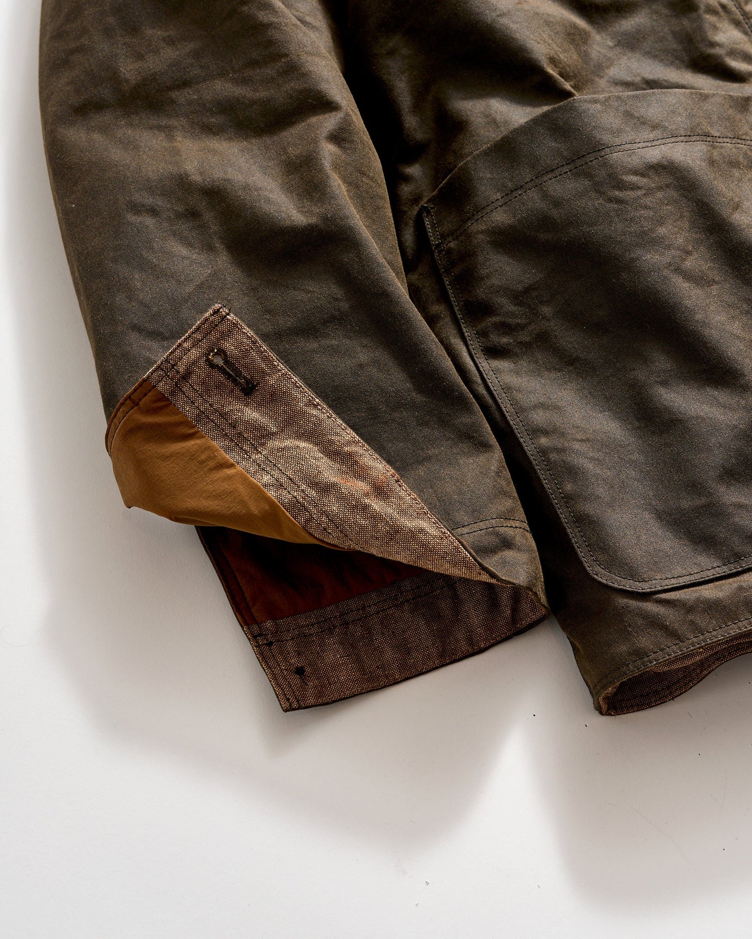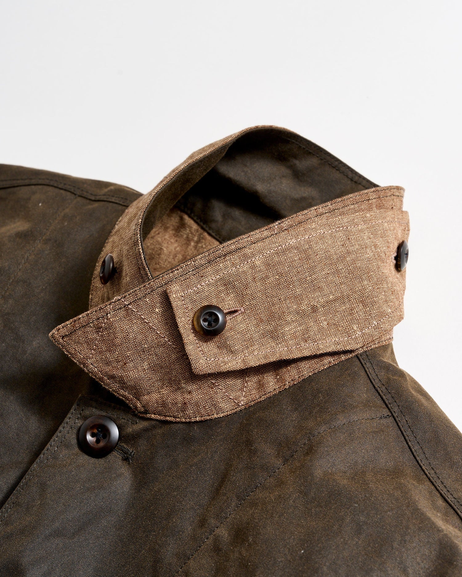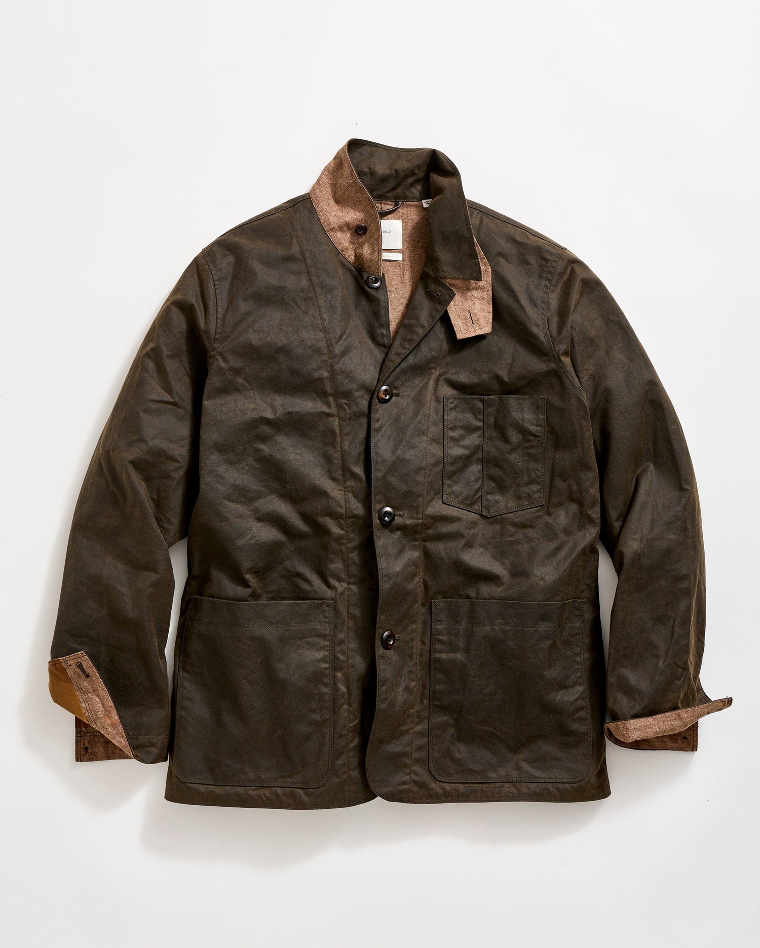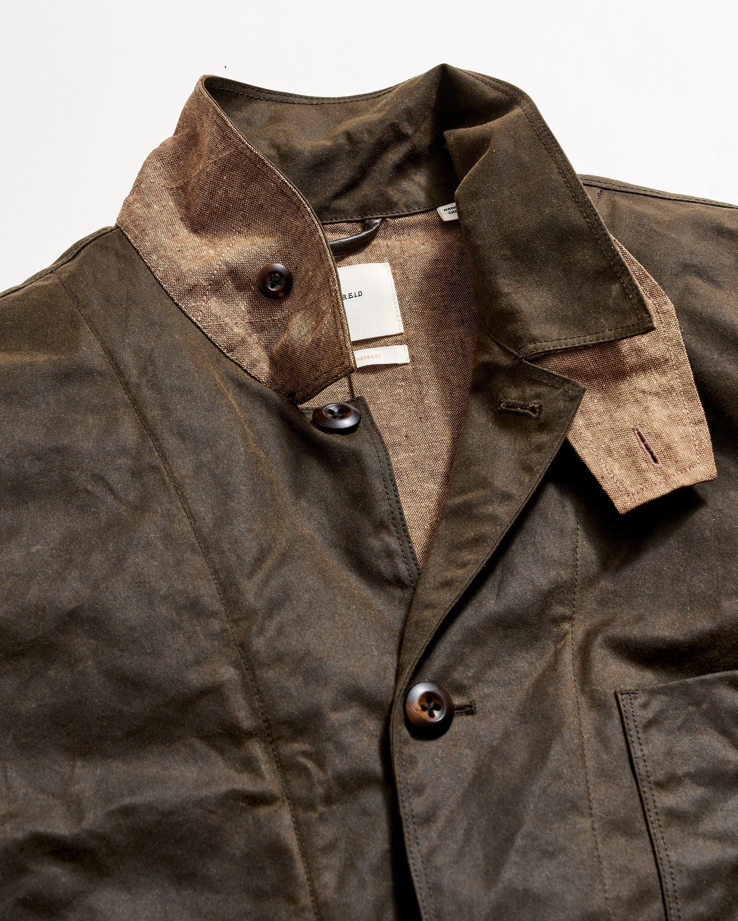 This Quail jacket is based on a silhouette for quail hunting. The jacket is made using Halley Stevensons fabric with a water-repellent, waxed finish. It's lined with chambray that breathes well when you've got layers underneath. The jacket features internal pockets that can also hold quail while you're out. It's just the right weight to feel comfortable as a top layer without trapping all that heat in.