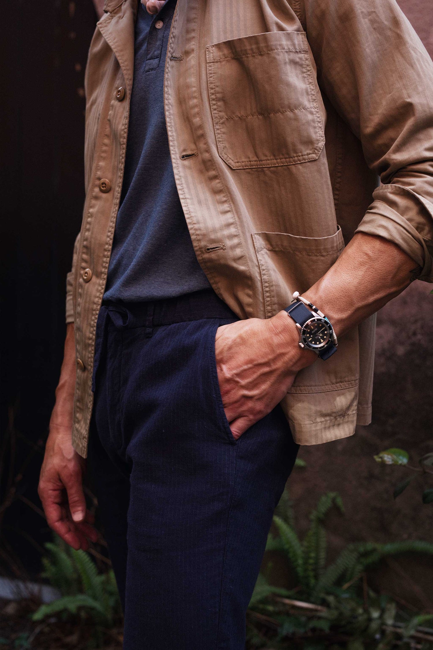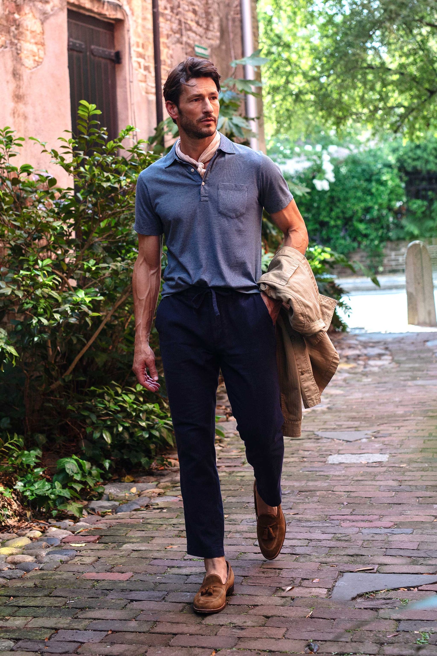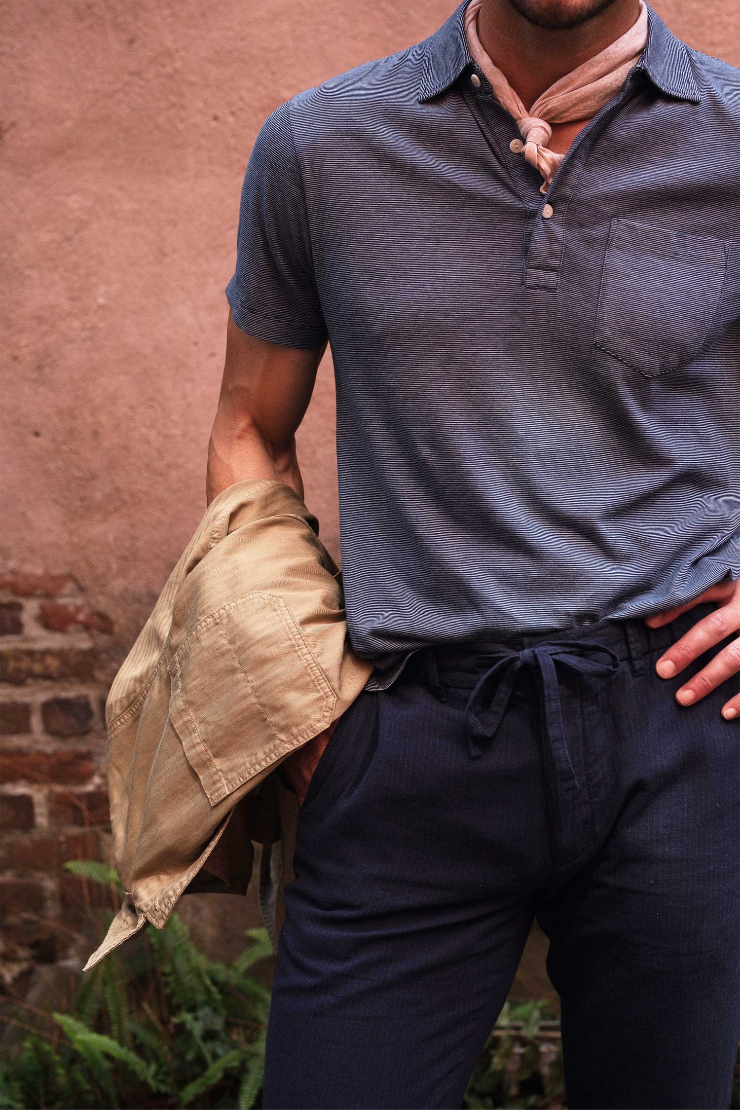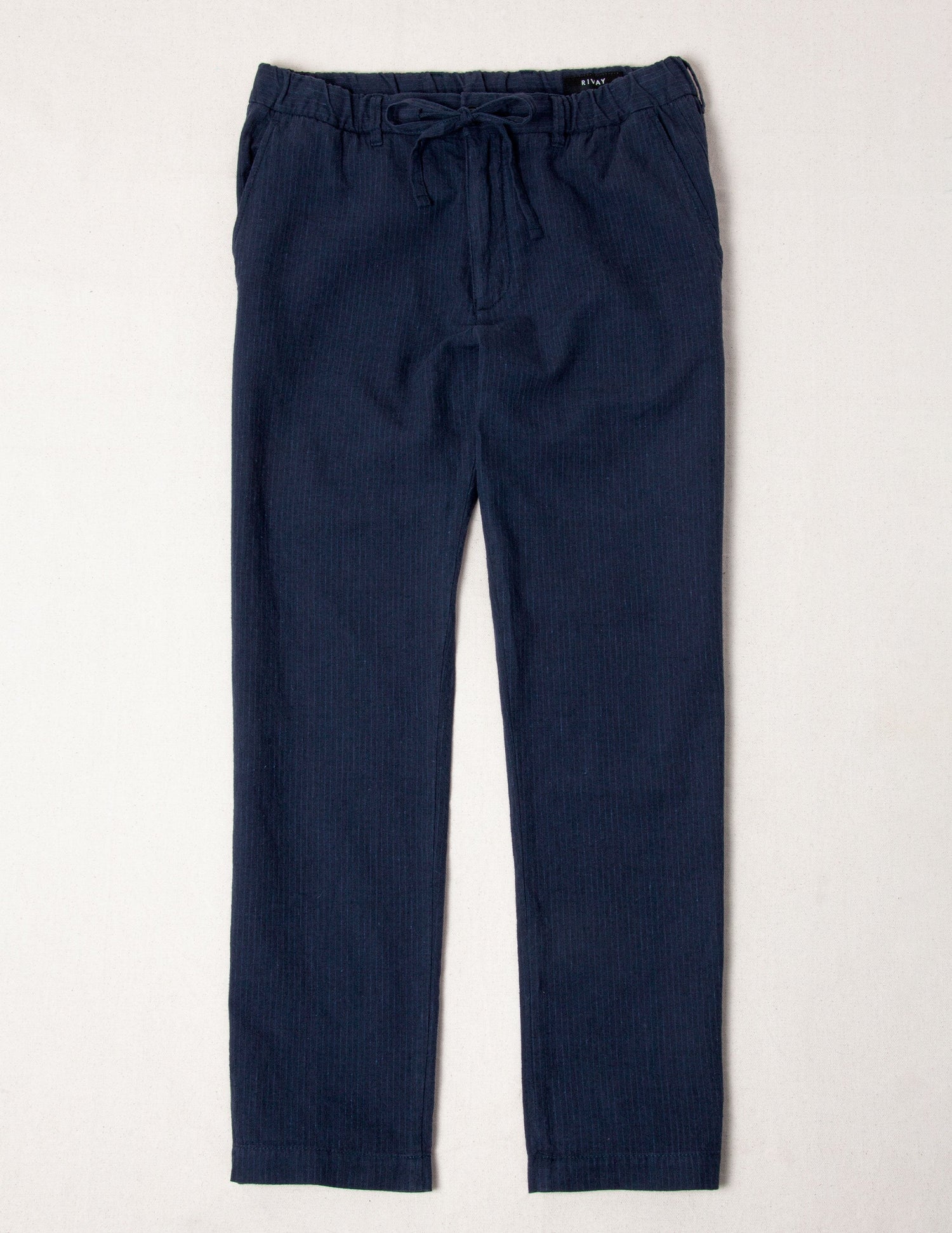Laid-back polish, Riviera edition. The Ravello Cotton Linen Pant from Rivay is cut from a breezy cotton-linen blend in a classic navy and blue stripe—a subtle nod to Italian summers and salt air. The relaxed, drawstring waist and straight-leg fit make it easy to dress up or down, whether you're dockside or desk-bound. Lightweight, breathable, and never trying too hard. Pair it with a crisp tee or an open linen shirt and you're good to go.
