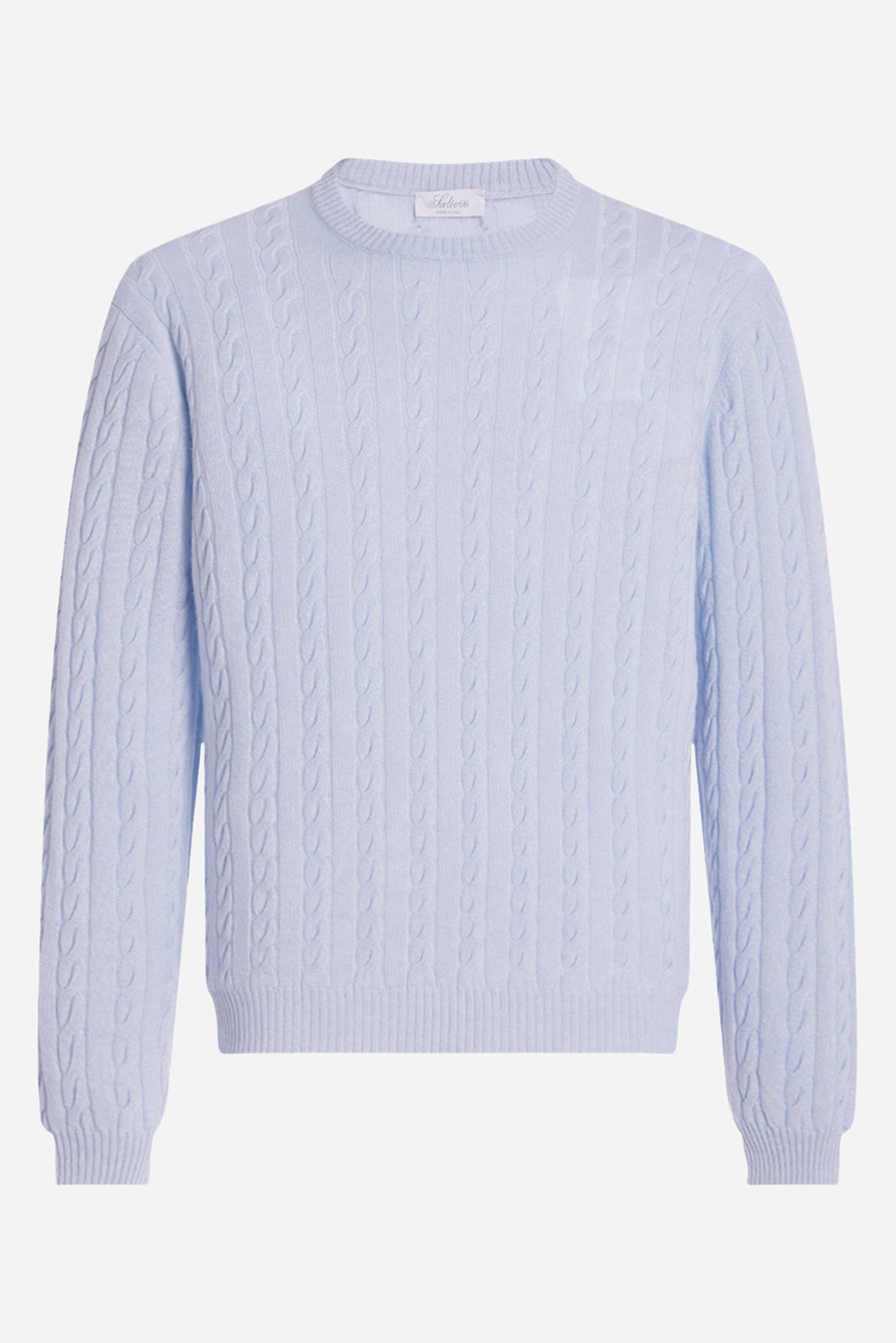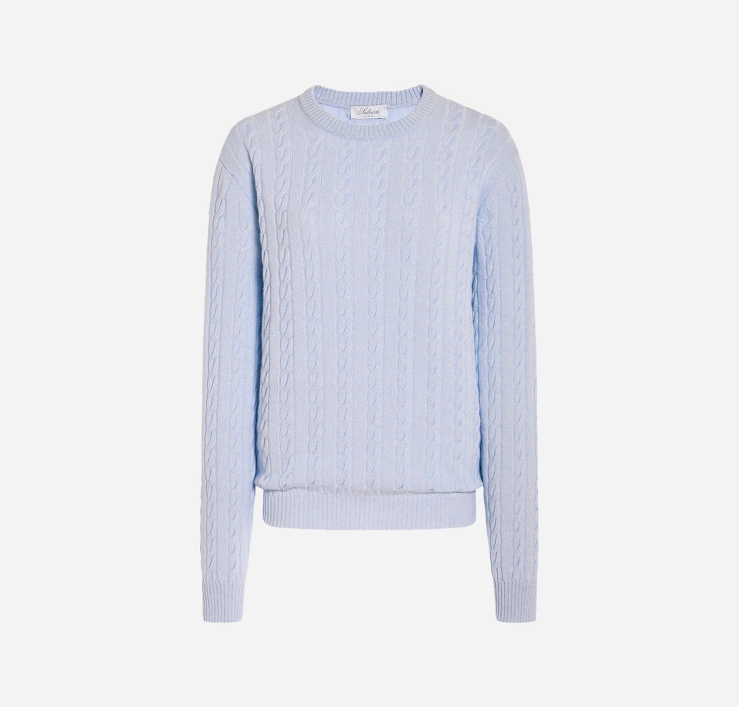 Raymond Cable-Knit Cashmere Sweater in Light Blue