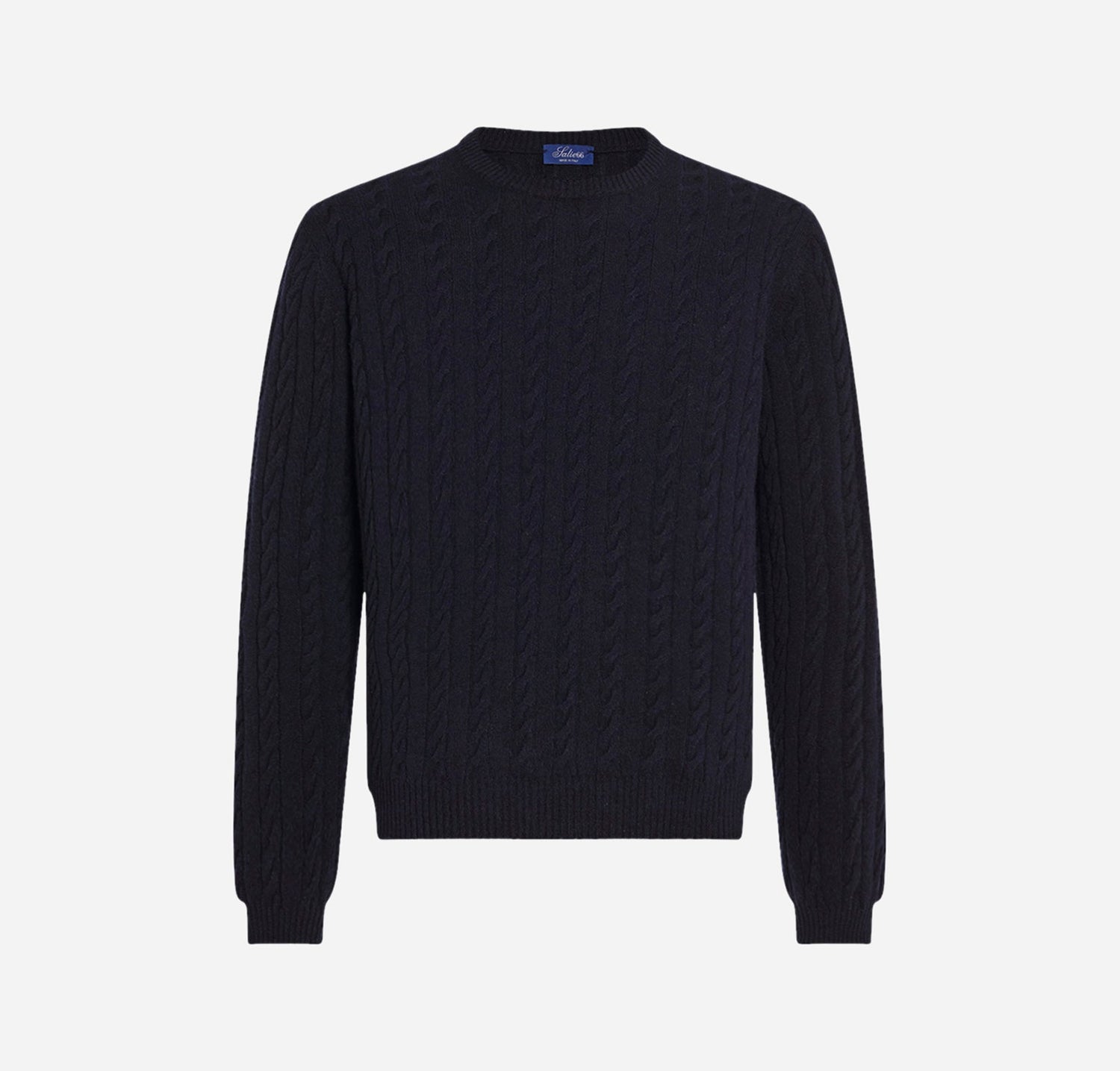 Raymond Cable-Knit Cashmere Sweater in Navy
