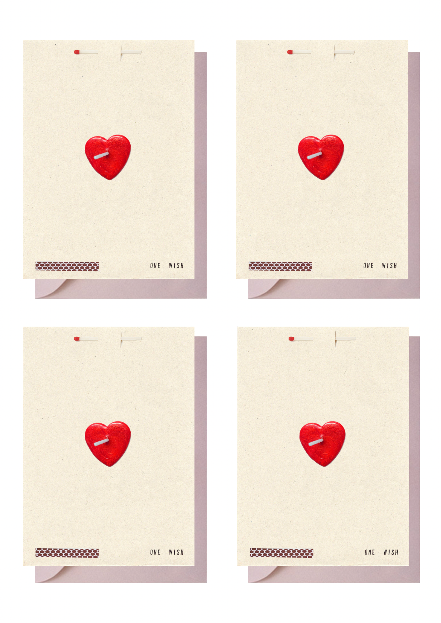 The Red Heart Set of Four offers a bold and modern take on the timeless note card. Equal parts sweet and cheeky—perfect for love notes, thank-yous, or just-because messages, each card is stamped with a bright red heart and includes a wick. This set of four makes for a stylish way to send a little affection. Fun, versatile, and ready for any occasion, they're the kind of cards you'll be glad to keep on hand.