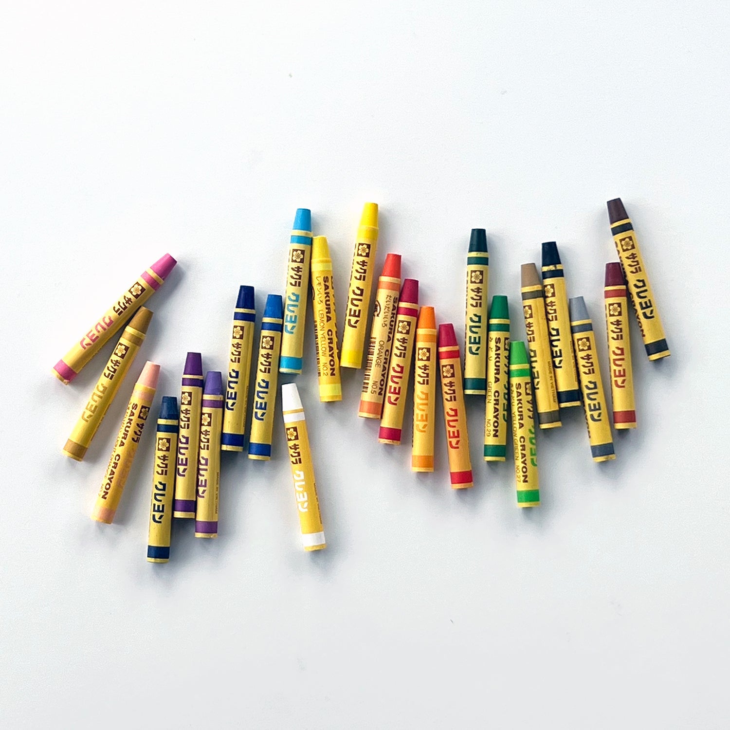 These wonderful wax crayons never fail to call in the muse. Who wouldn't be inspired by this alluring palette of 24 richly saturated colors? The charming packaging is an invitation to let loose and play with the possibilities. They're imported from Japan in a cardboard case with an elastic band that keeps it closed.