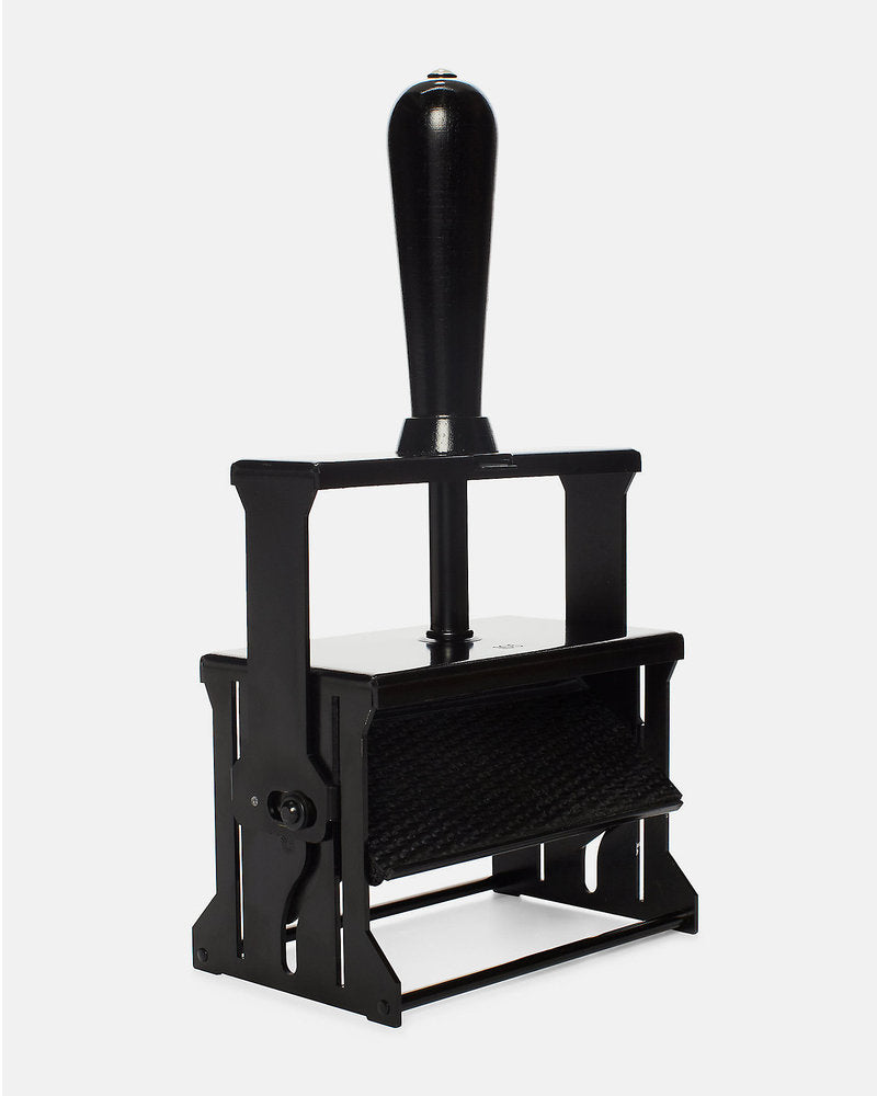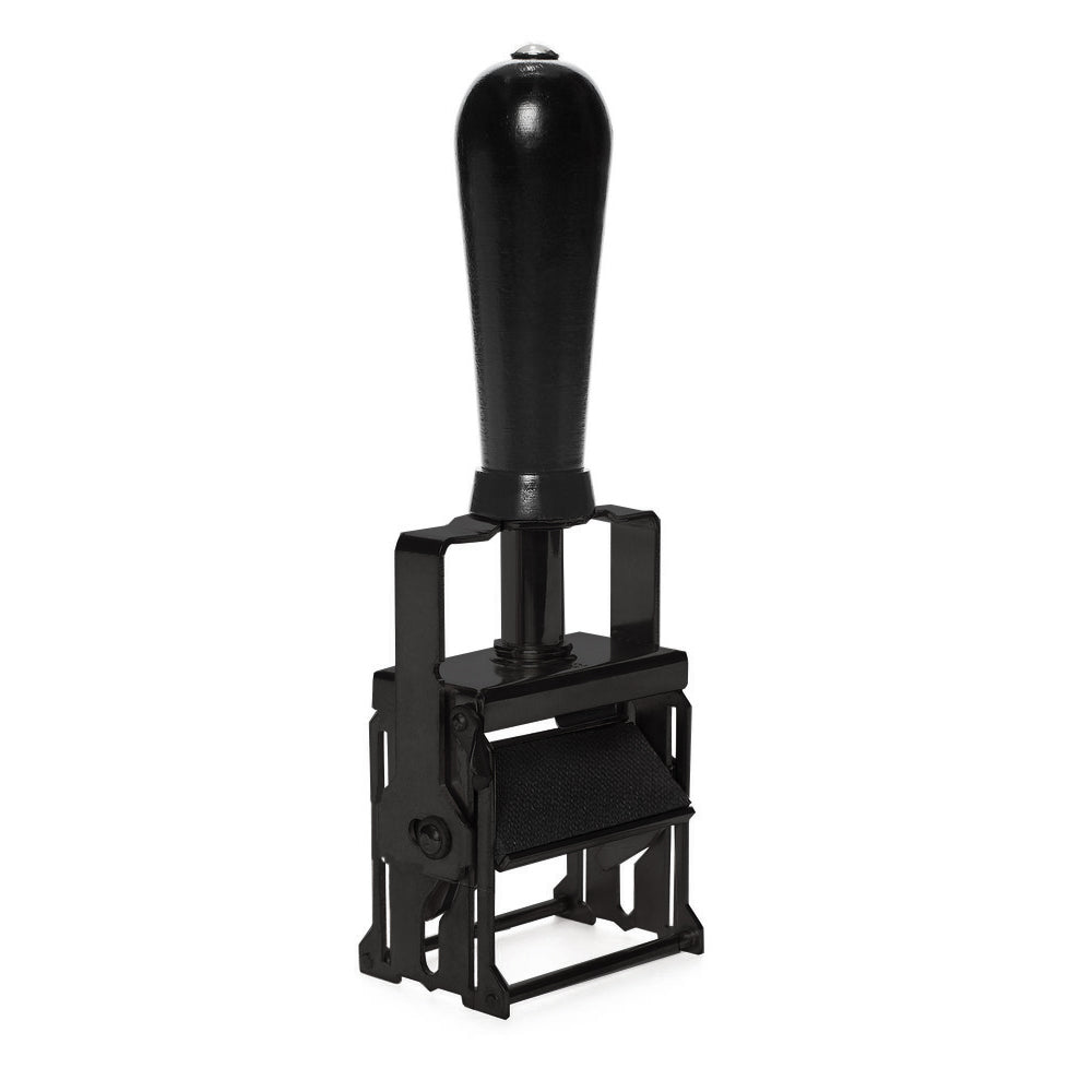 This model accommodates interchangeable typographic imprint plates so they can be used for multiple messages. One imprint plate is included with your Stamper.