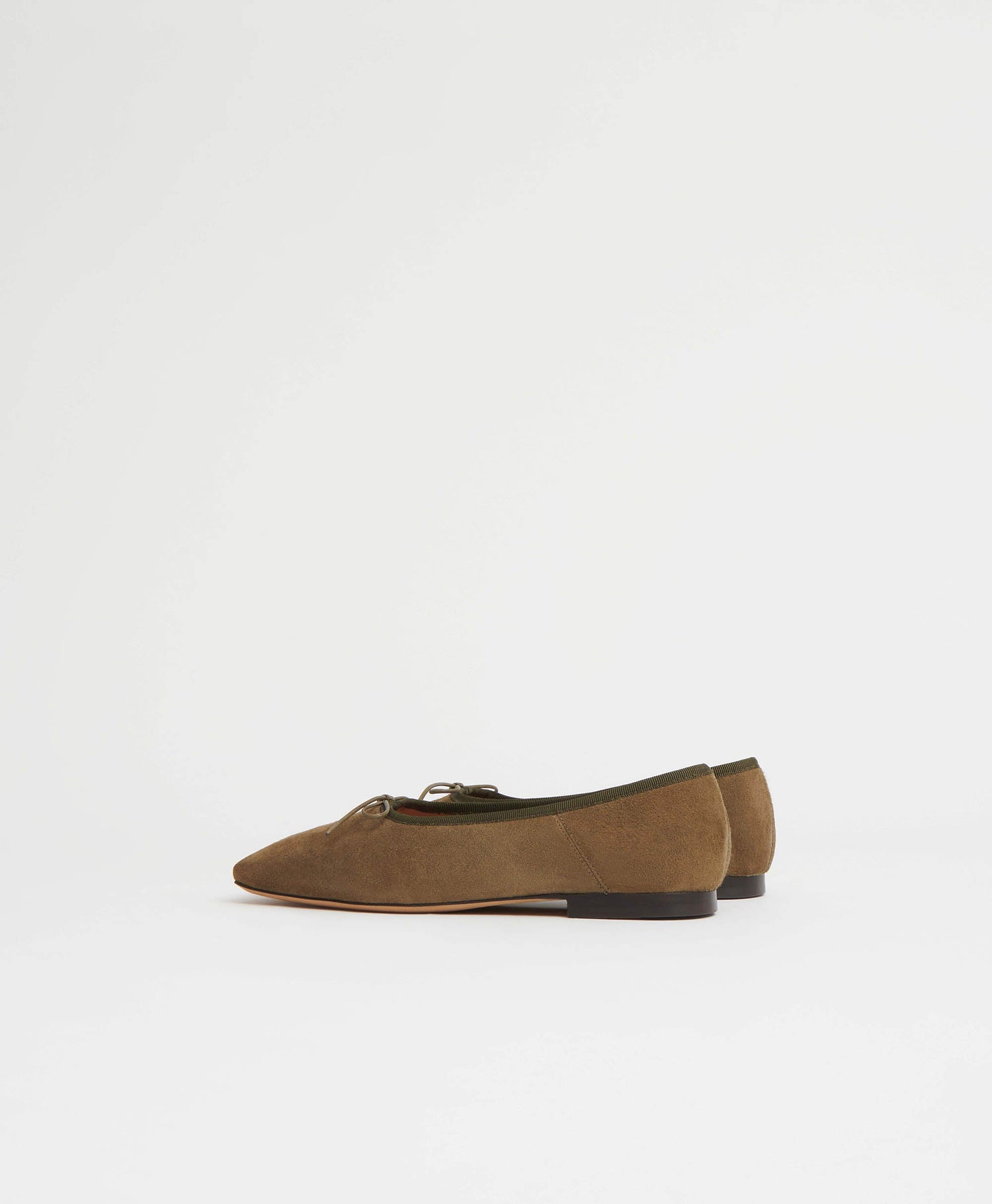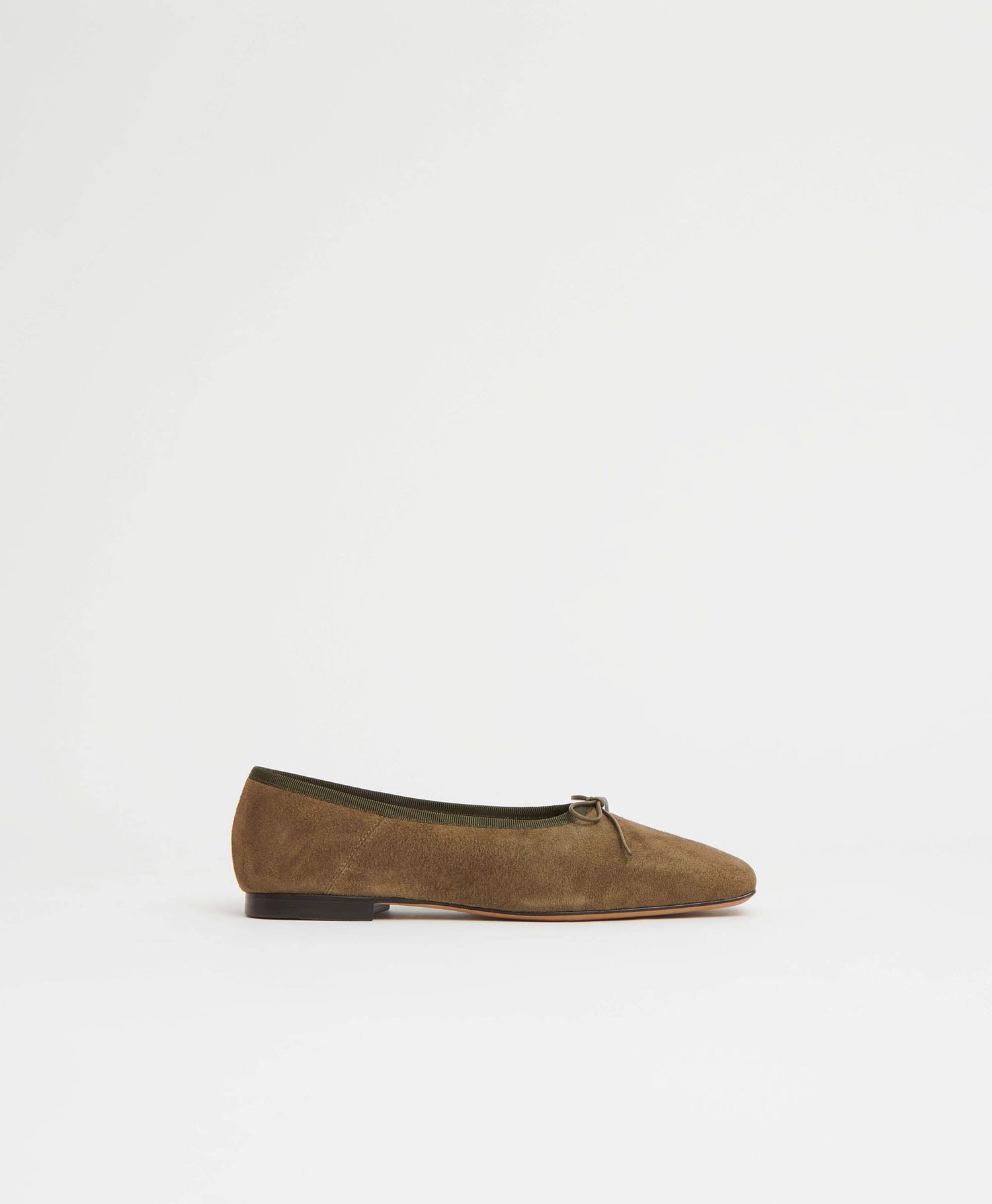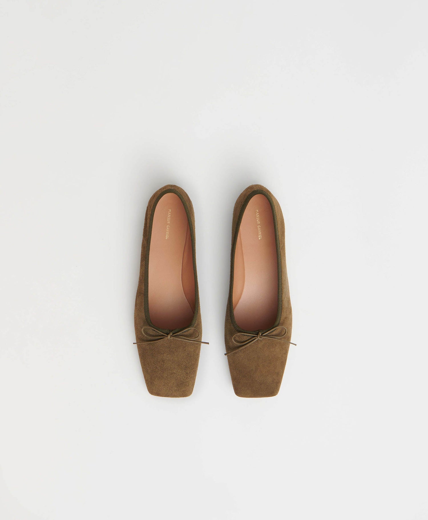 !!!Description---Our Square Toe Ballerina is crafted from premium suede leather with a breathable lining. Easily adjust the fit of your flat by gently pulling on the bow string for a more snug feel.