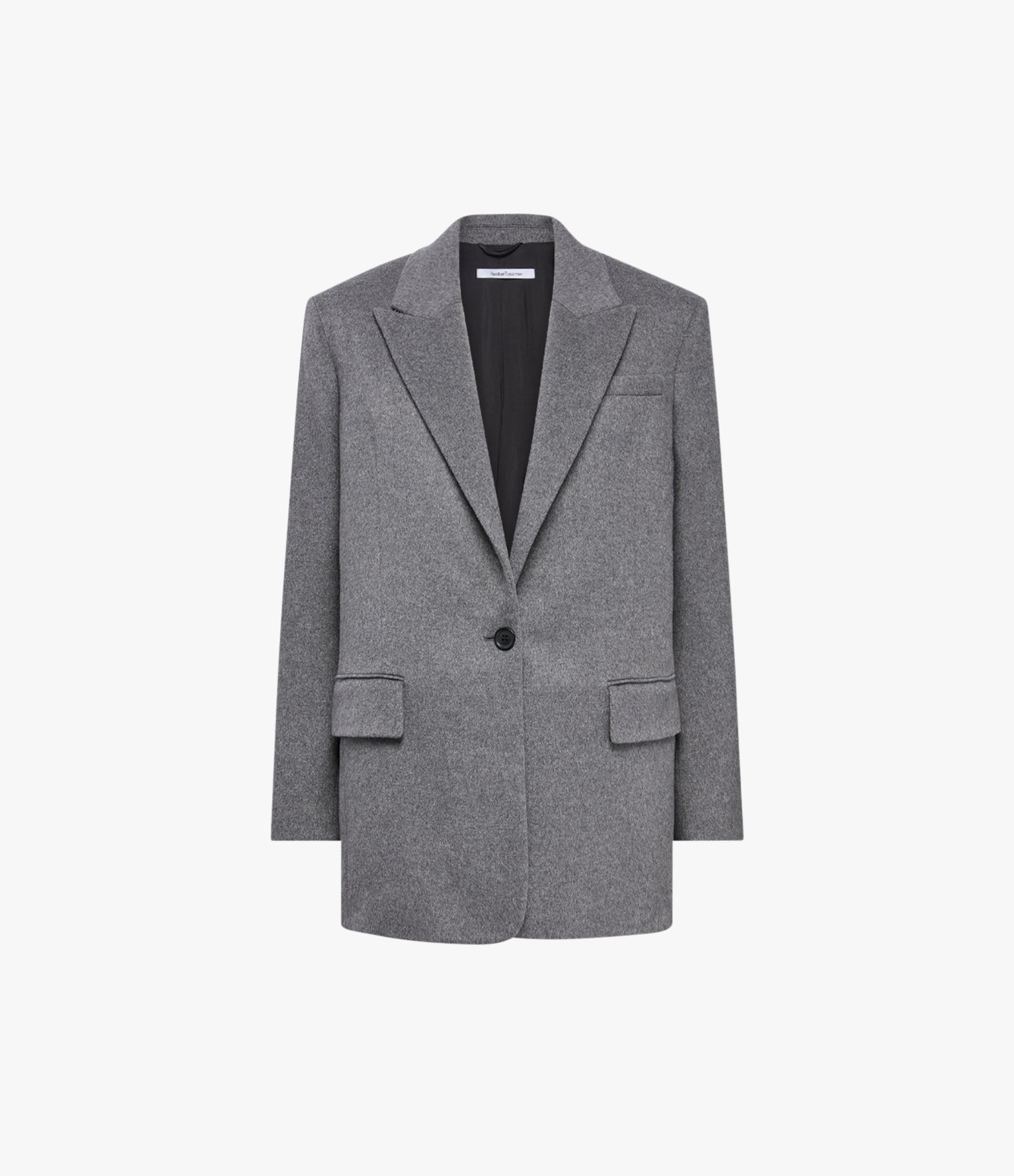 Cut from luxurious recycled cashmere, this jacket offers a refined take on modern tailoring. The Tailored Cashmere Jacket is designed with a sharp peak lapel, single-button closure, buttoned cuffs, and flap pockets. It balances structure with ease. The oversized silhouette lends a relaxed sophistication, while its fully lined construction ensures comfort and longevity. A timeless layer that moves effortlessly between day and evening, it's a wardrobe essential for seasons ahead.