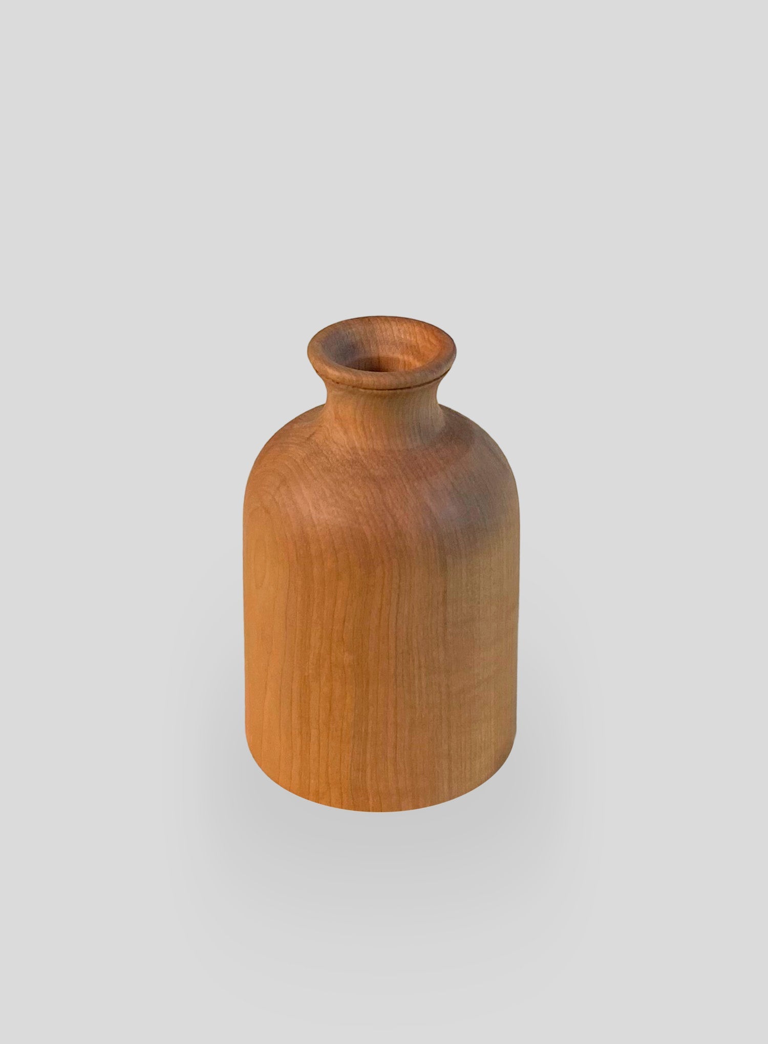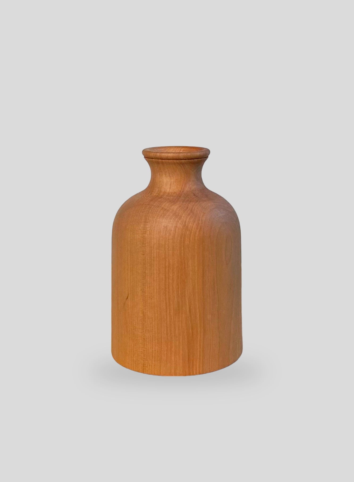 This vase is hewn from a solid block of Fireland Cherry Wood using the ancient technique of woodturning. Fireland Cherry (called Lenga in Argentina) is native to the Southern Andes range in Argentina and Chile and is a semi-durable wood with beautiful rippling and color.