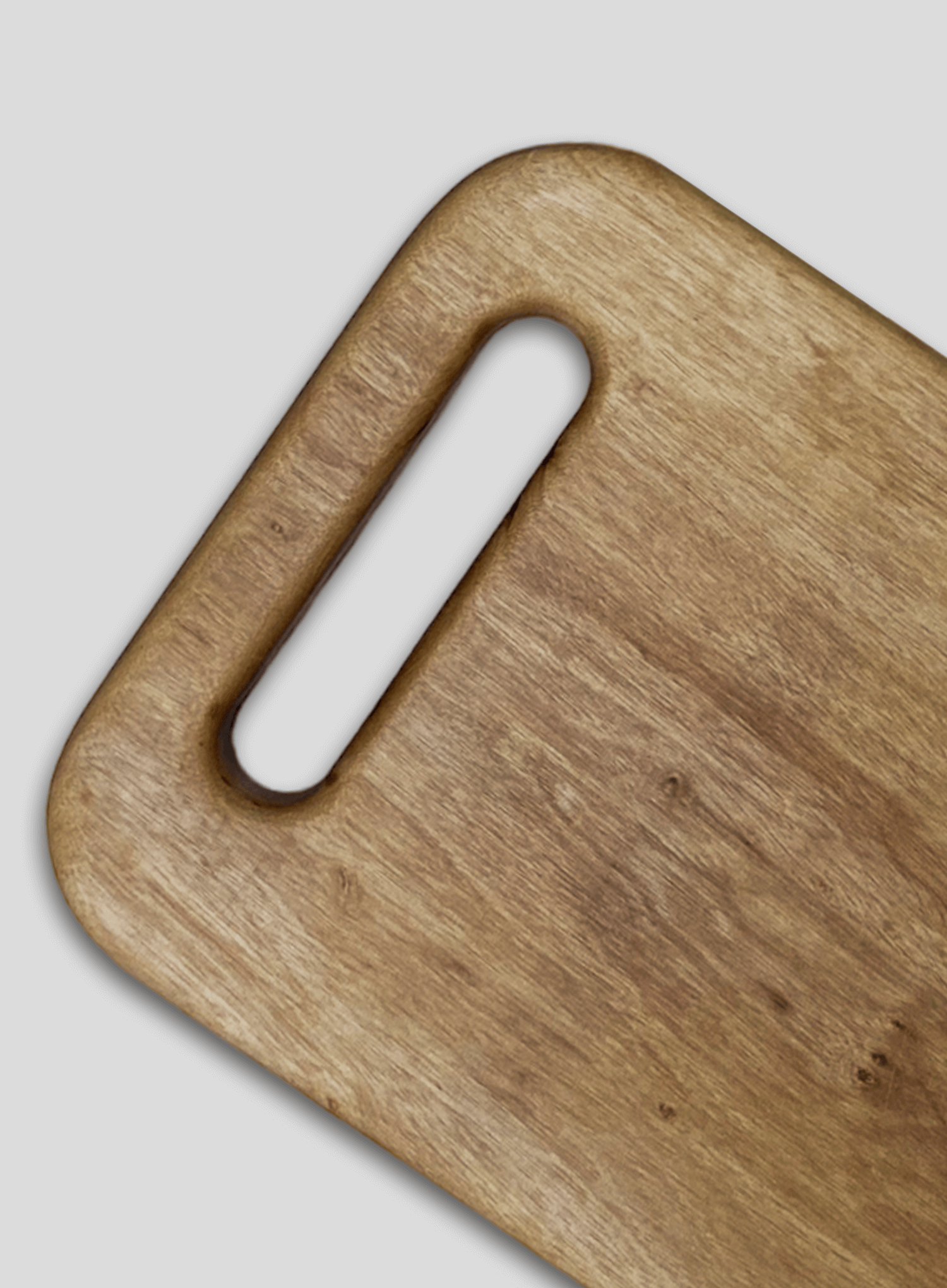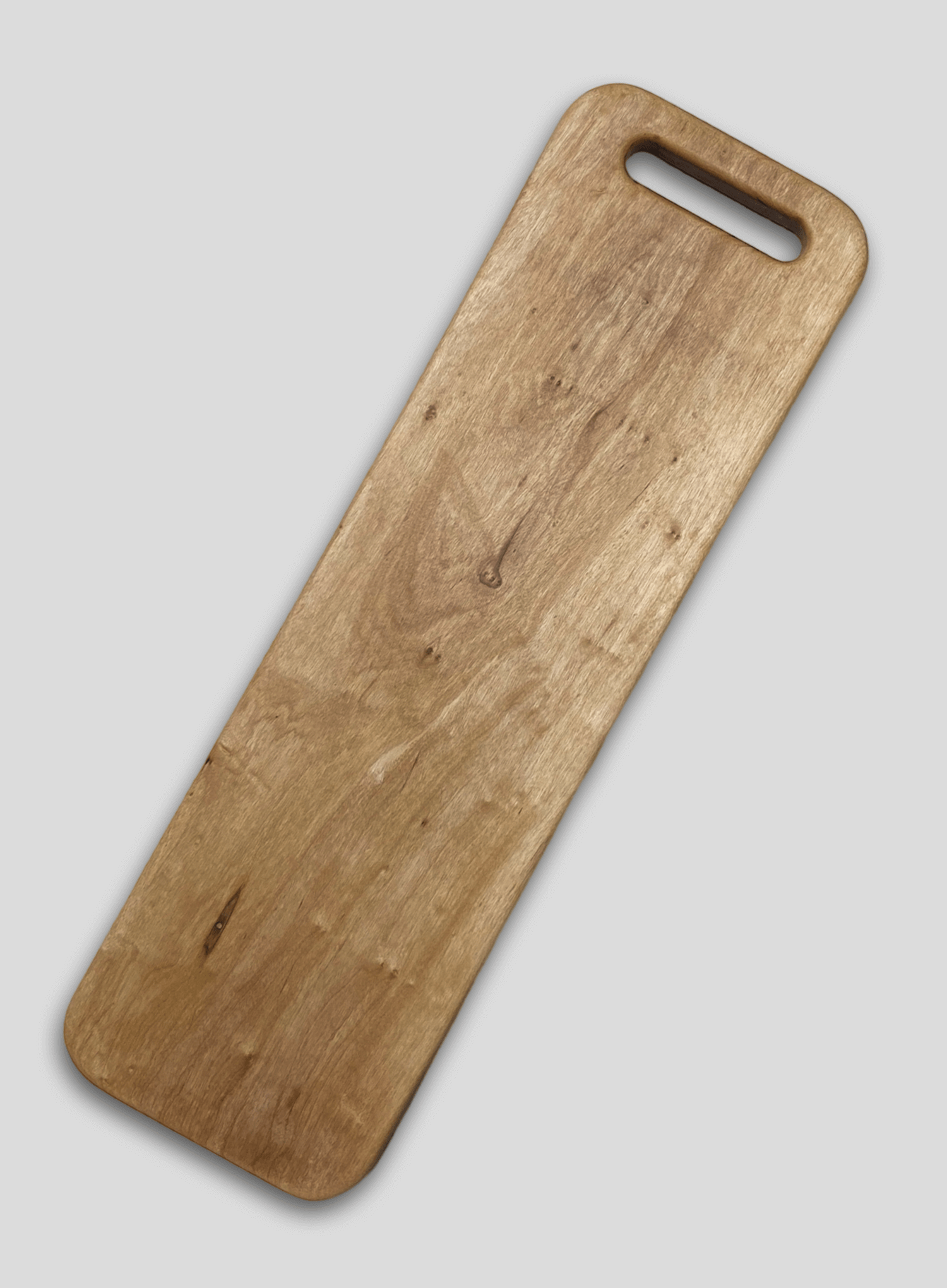 This breadboard is hewn from a solid slab of Fireland Cherry. At over 20 inches long, this board is perfect for loaves of bread or charcuterie.