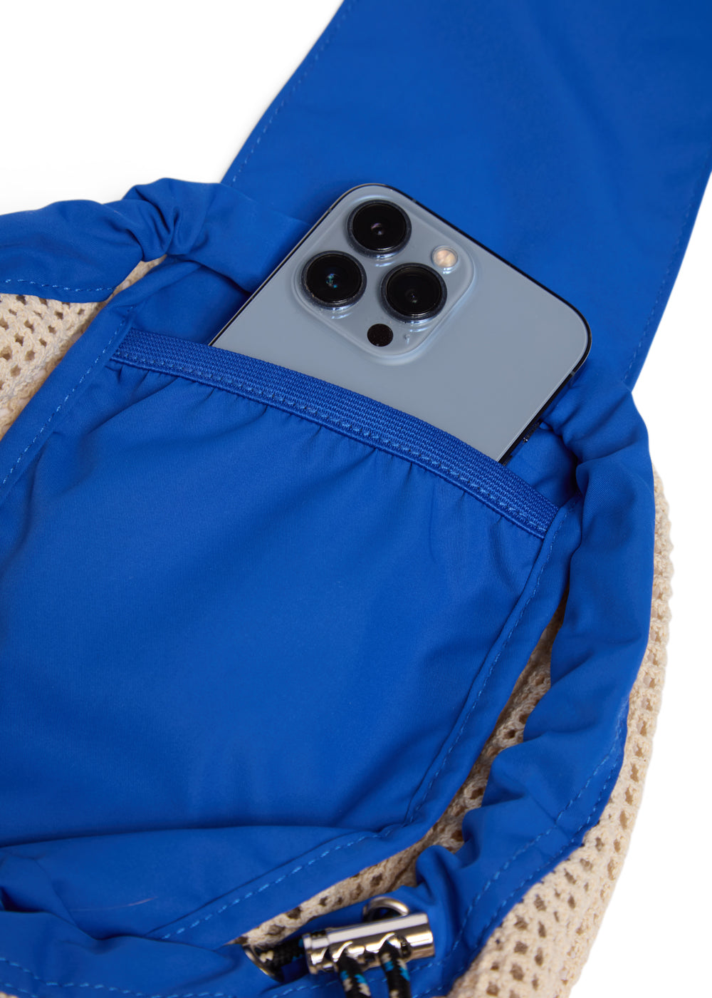 Modern mesh, redefined. The Net.Zero is a vibrant take on BYBBA's signature day bag—weightless, breathable, and built with durability at its core. Made from recycled ocean plastic and fishing nets, it pairs sustainable materials with the brand's signature rope detailing, sleek metal hardware, and a clean silhouette. Two interior side pockets make space for the essentials—think water bottle, phone, or market finds—while its versatile design works crossbody or on the shoulder. Perfect for the farmer's market, a bike ride, or the beach, it's a hands-free staple that proves reusable can also be refined.