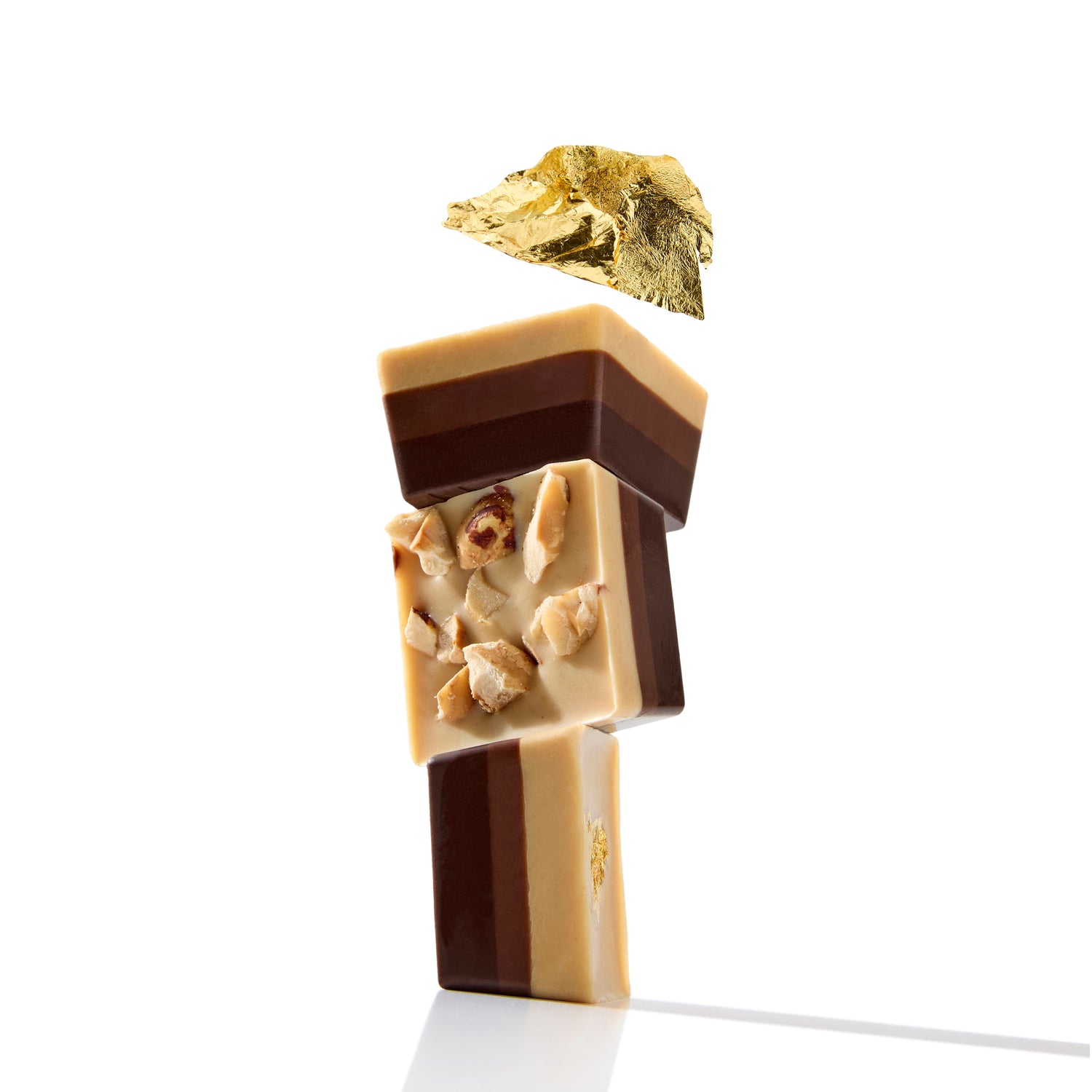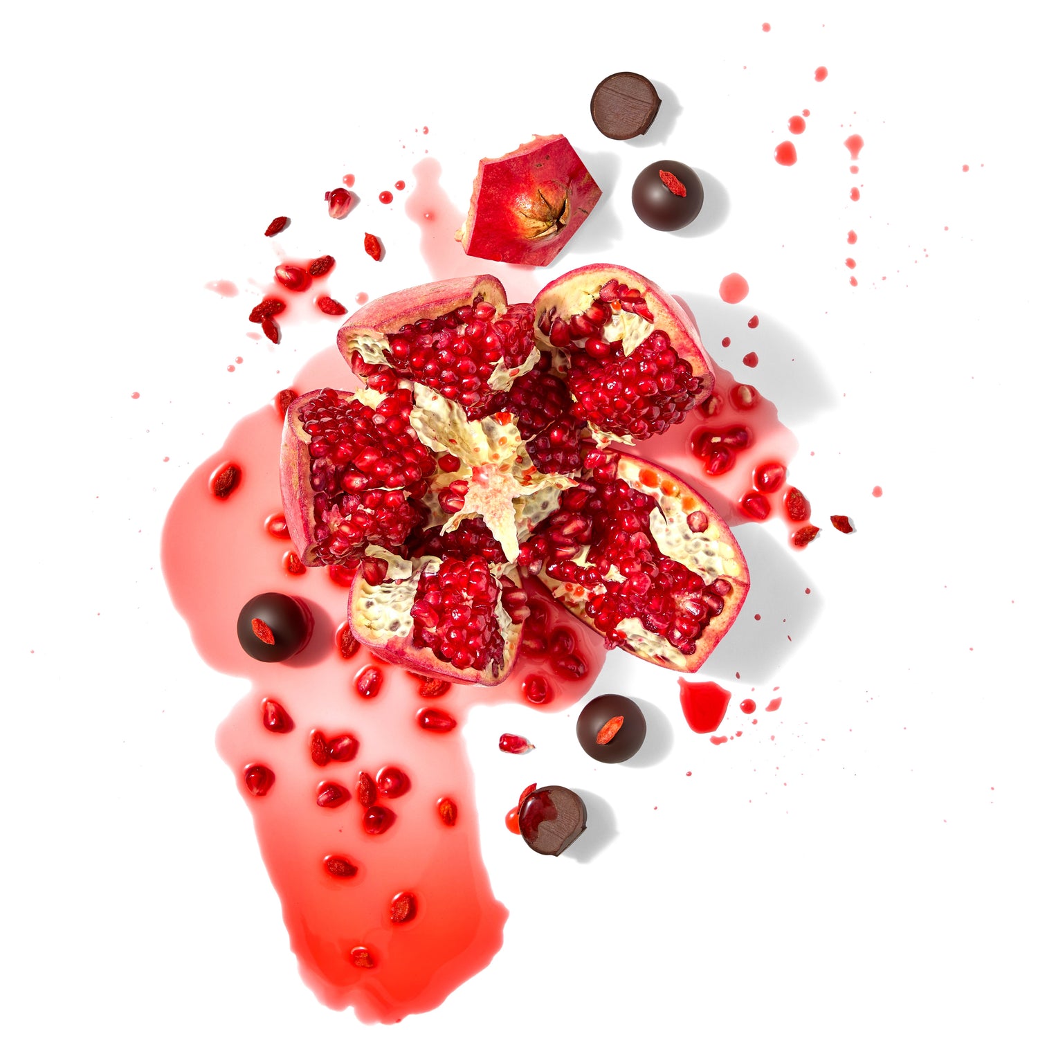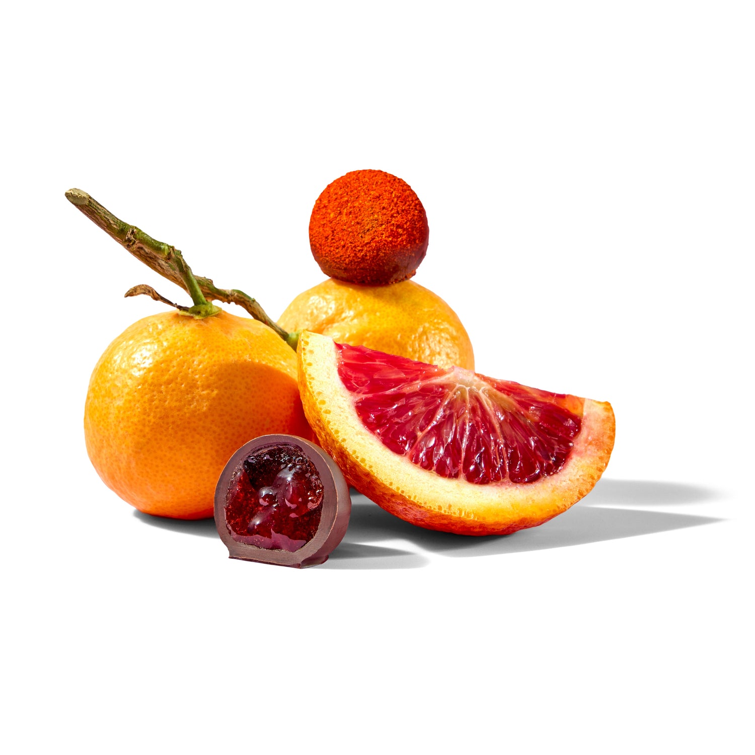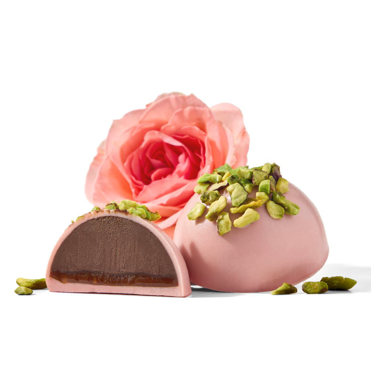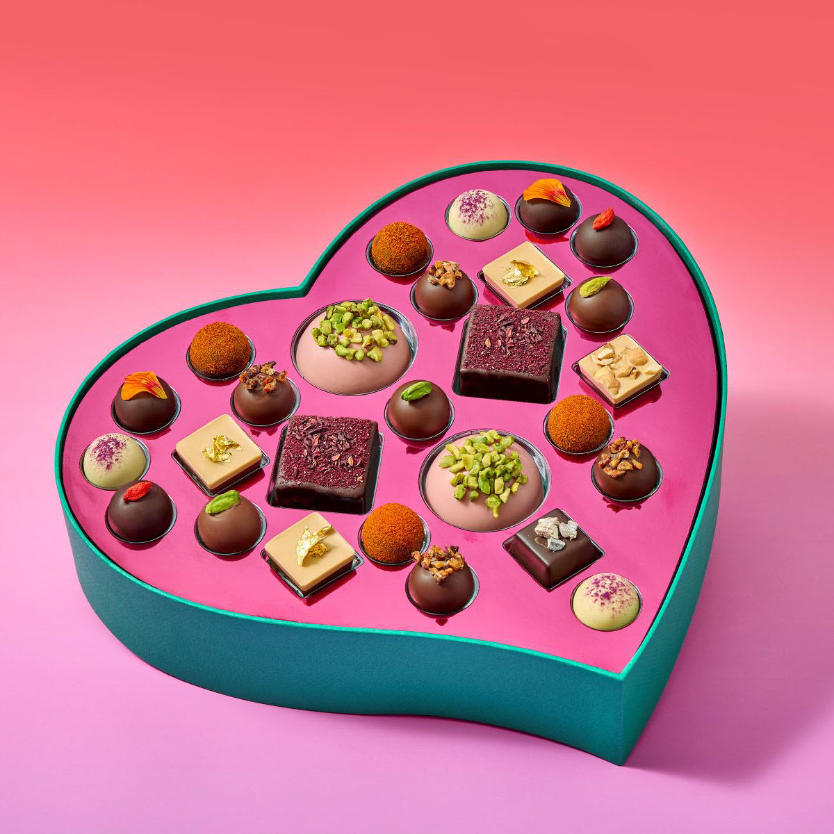 Experience a kaleidoscope of parfums inspired by the vibrant beauty of the peacock with Vosges' 27-piece truffle collection. Each truffle celebrates nature's boundless artistry, weaving together sweet and earthy Japanese ube, the nutty richness of Sicilian pistachio, the lush sweetness of pomegranate, the indulgence of hand-cut gianduia layers, and the delicate allure of Bourbon Island vanilla and blood orange caramel marshmallows.