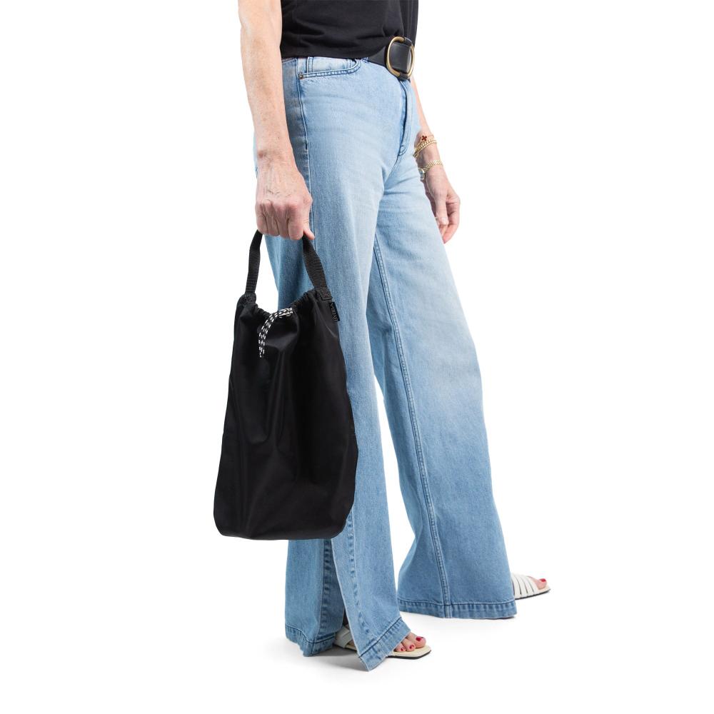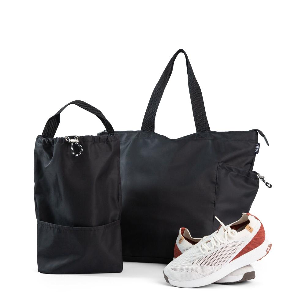 Two compartments, endless possibilities. The Ripple Duo Pocket Bag reimagines the vertical tote, designed to hold anything from a pair of men's size 13 shoes to two wine bottles—or even your pickleball set. The pocket bag is water-resistant, lightweight, and made to last. Distinct interior compartments keep contents separate and organized, while sturdy metal hardware and refined finishes give it an elevated edge. This multi-functional carryall is equal parts practical and sustainable.