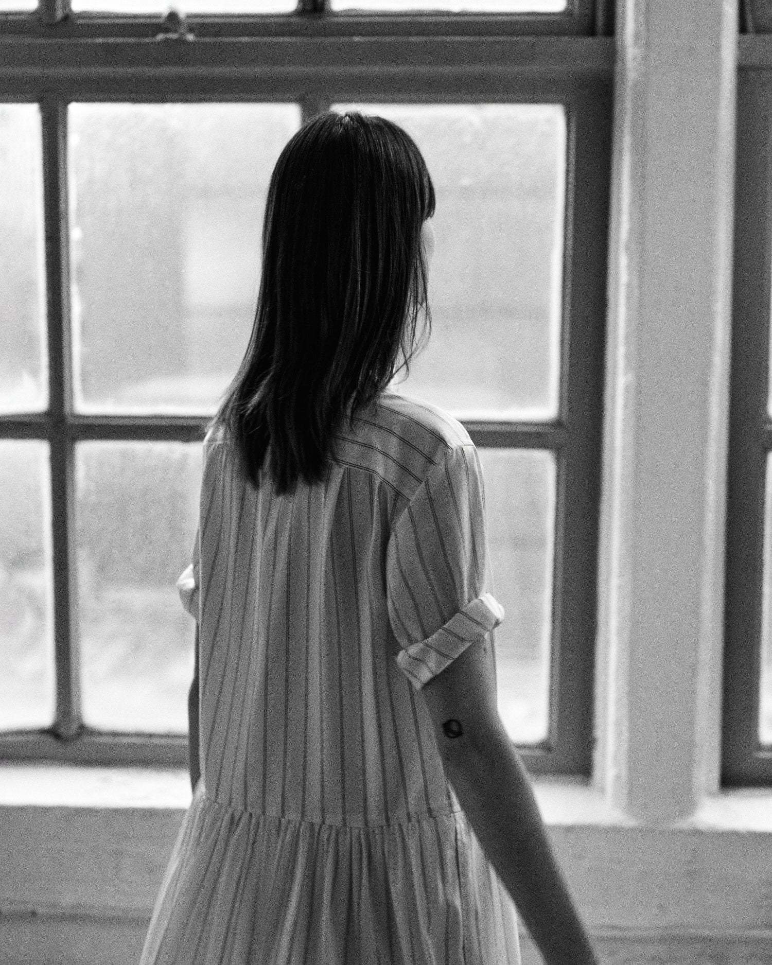 Relaxed A-line silhouette with a gently shirred skirt.