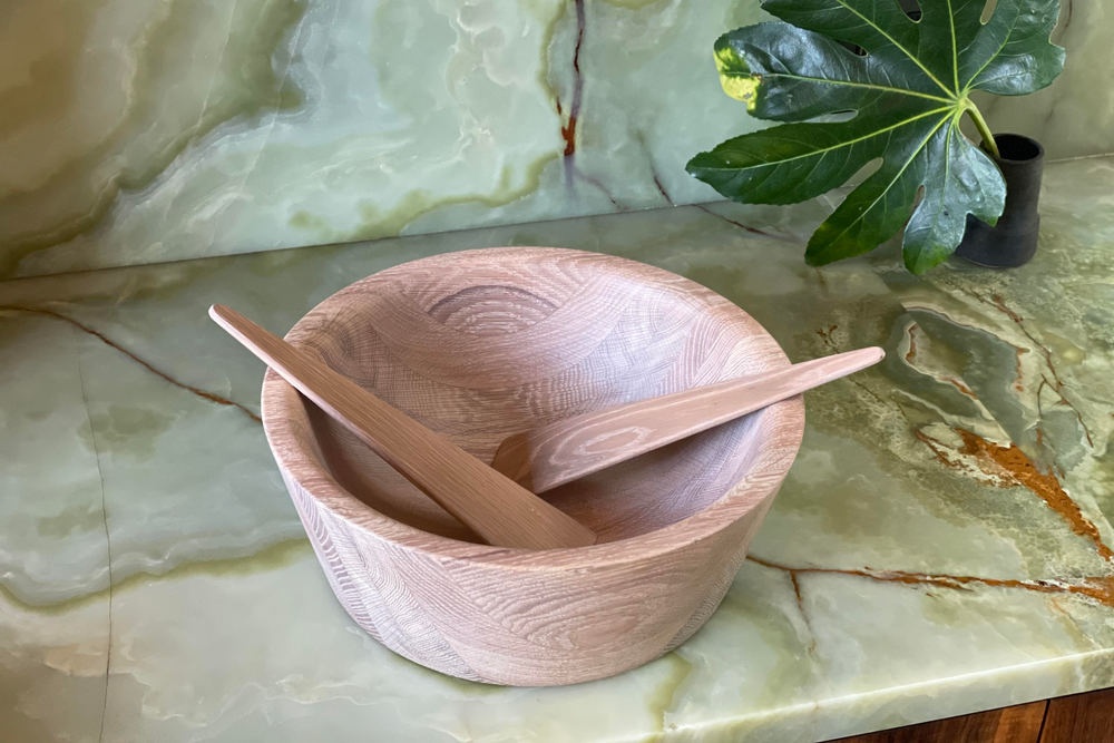Hand-carved from black walnut, ebonized oak, or white oak, the Lena Bowl is an ideal centerpiece for a dining table or credenza.