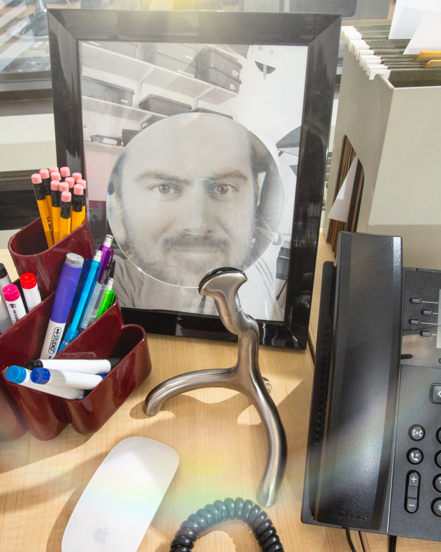 Painstakingly designed to be an authoritative and clarifying presence on one’s desk, the Vera Magnifying Glass takes on an almost sculptural aspect, lending itself to being seen as much as it does to seeing. So look at it. Look through it. Either way, you’re bound to discover something unexpected.