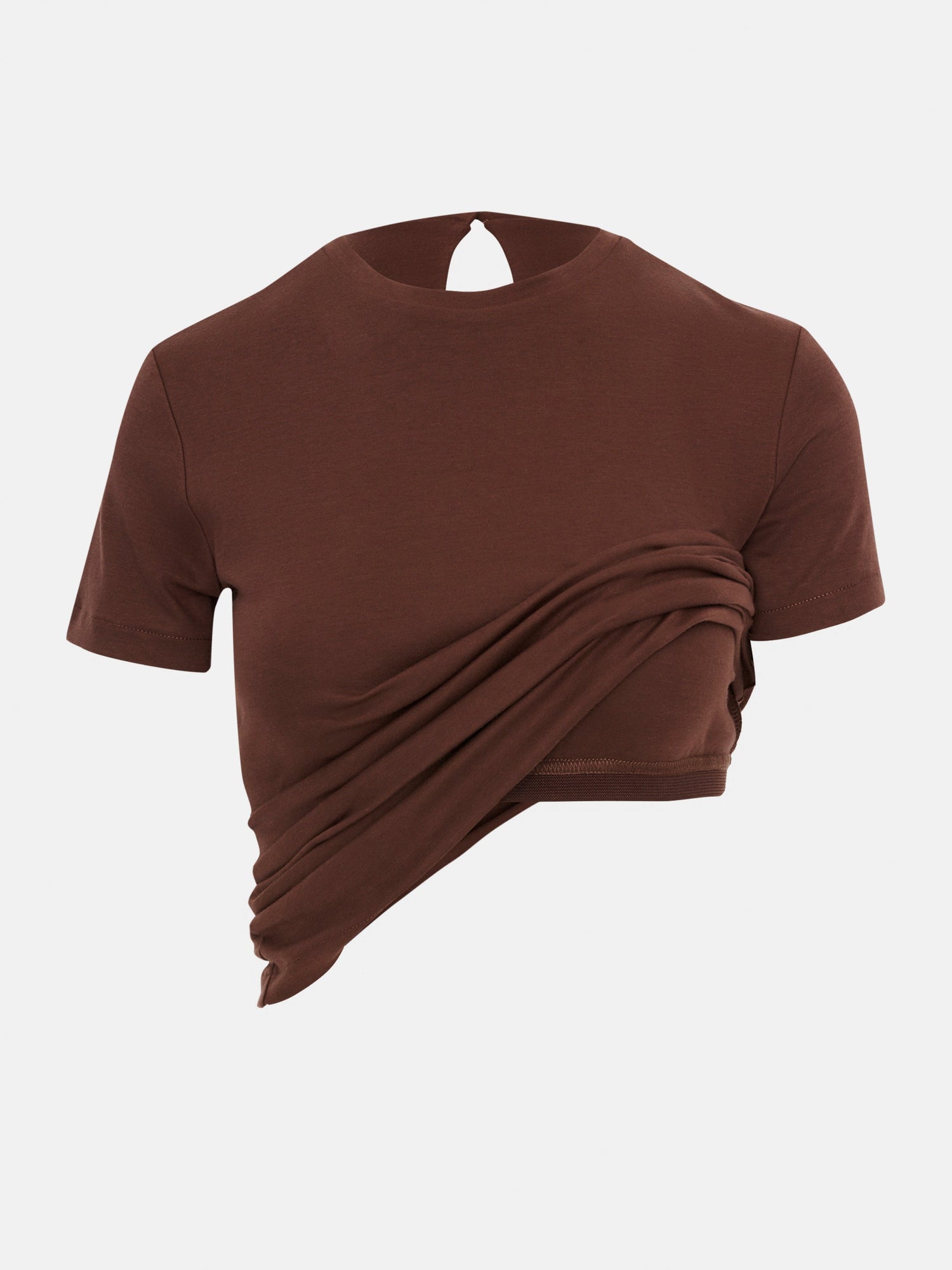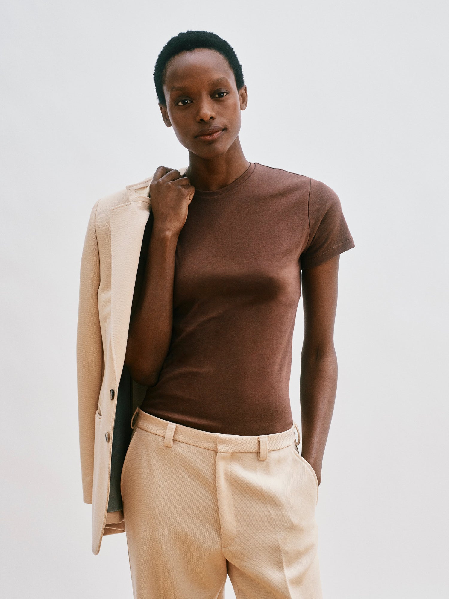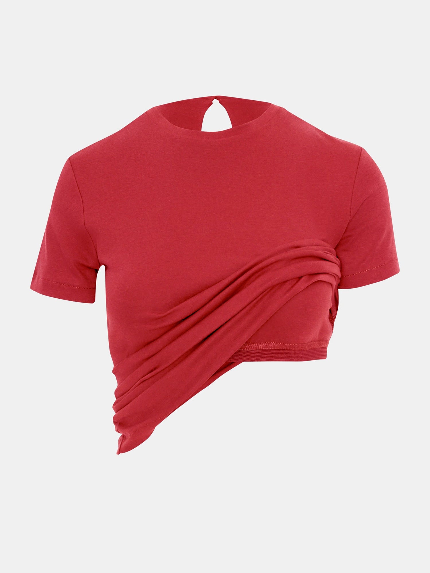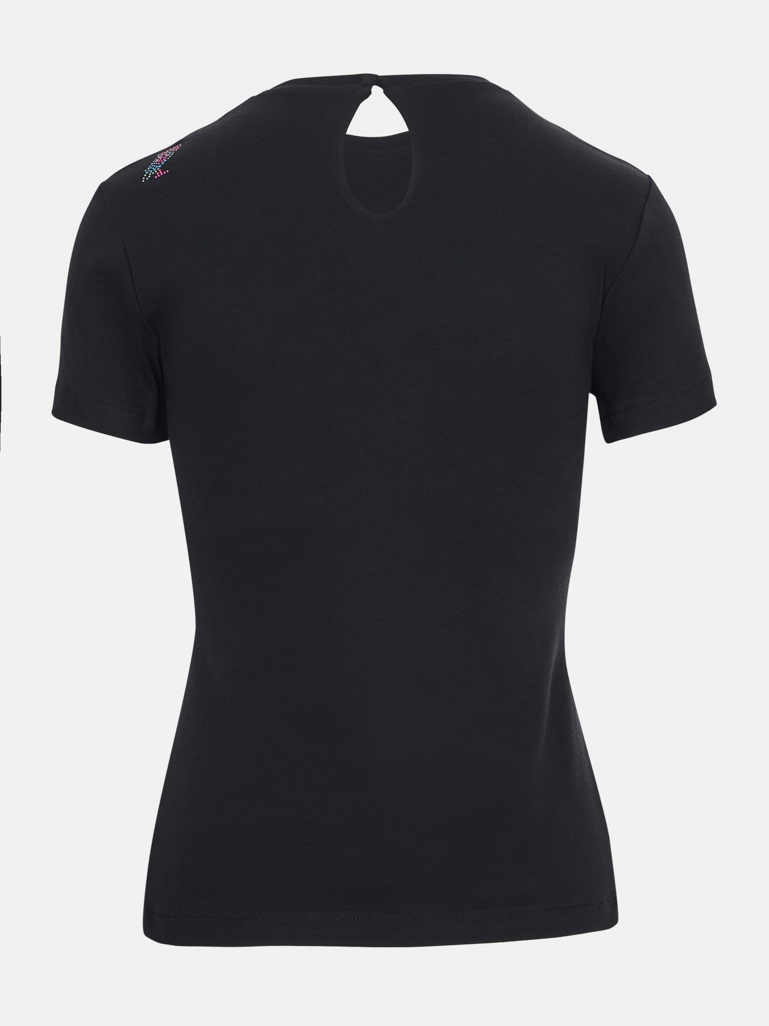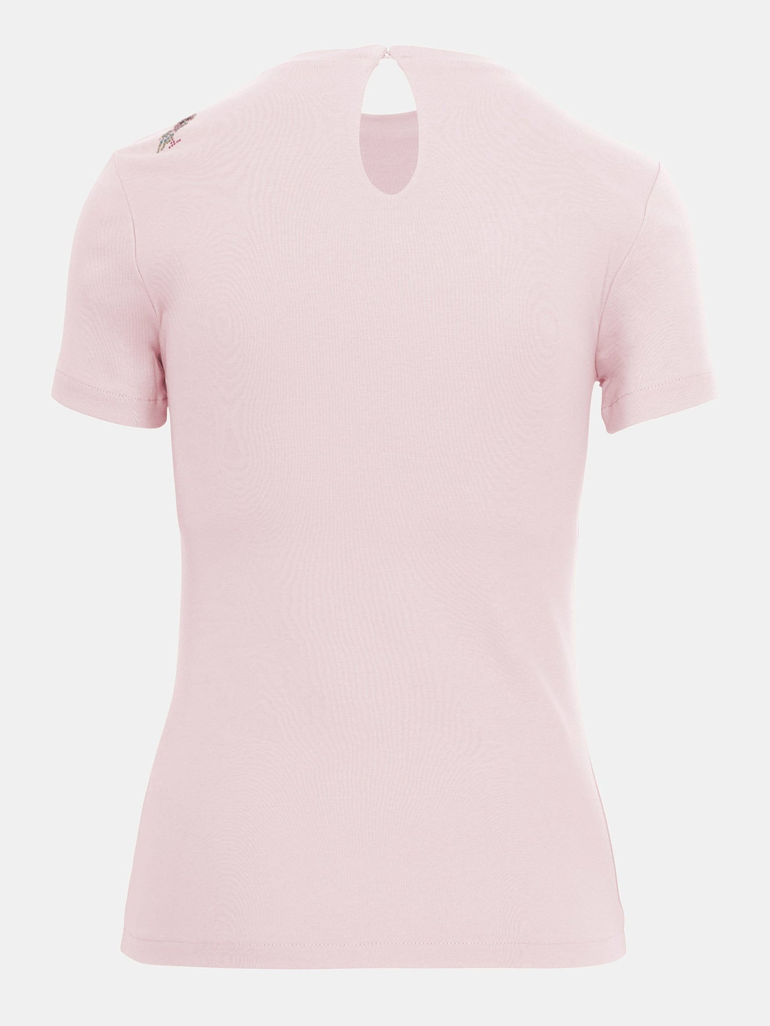 An elevated staple, Who's Crewneck T-Shirt comes with an internal shelf bra, pearl button closure, and jewel-shaped keyhole.