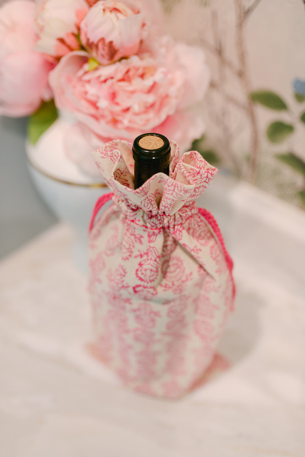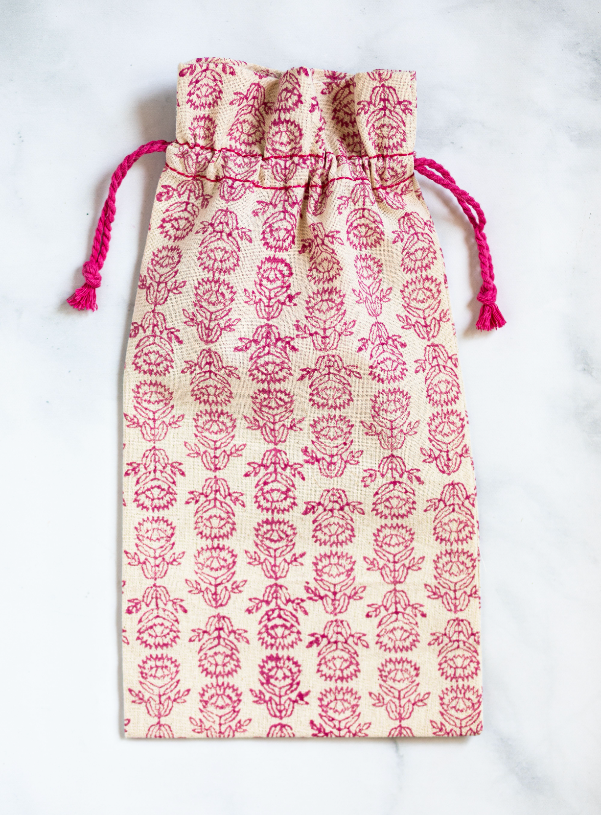 Elevate your wine or gifting experience with our chic hand block printed by survivors of modern-day slavery. Amaze your guests or gracious host with this simply beautiful wine/gift bag.