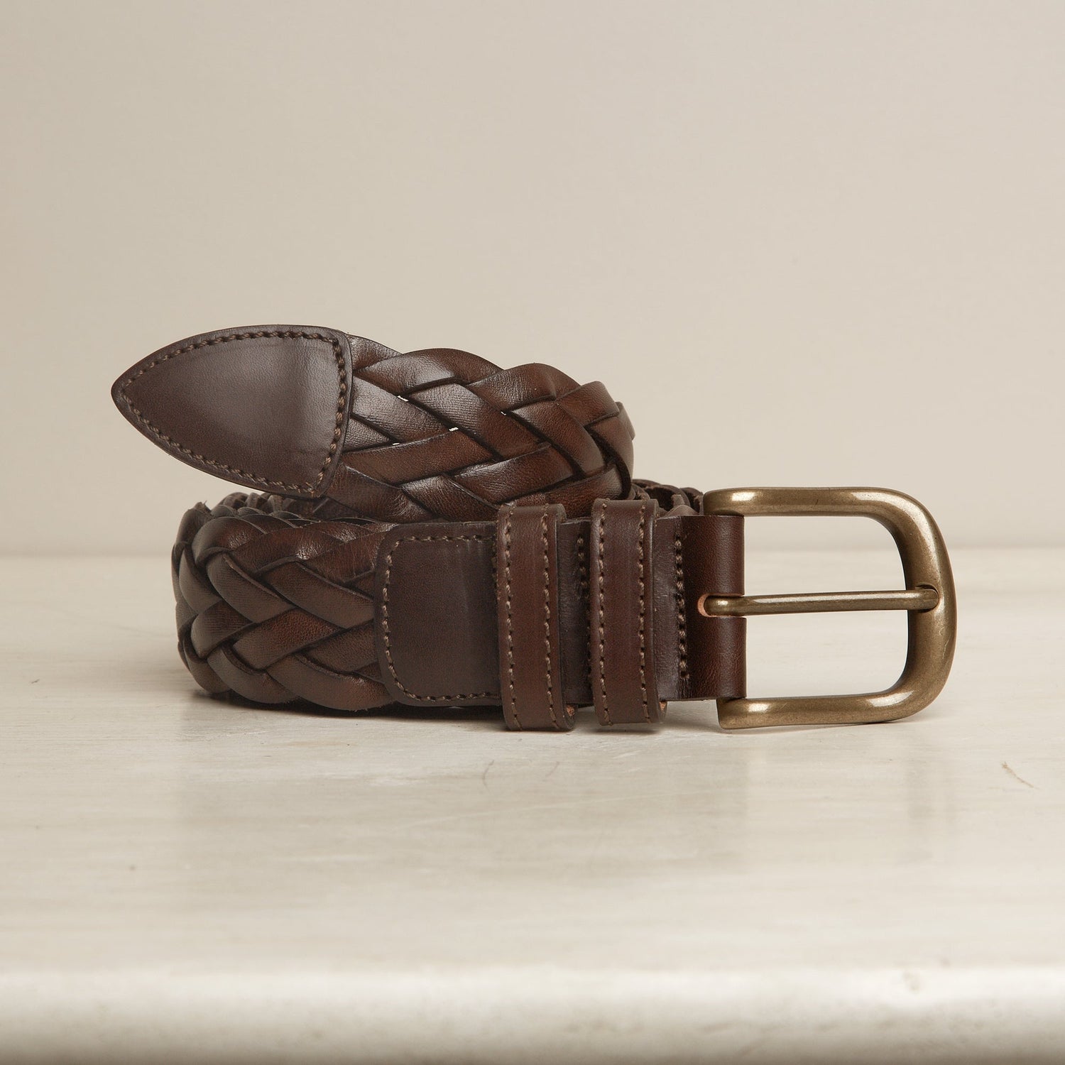 The Woven Leather Belt in Dark Brown is a classic accessory with a rich, understated finish. Made in Italy from supple full-grain leather, its braided design offers both flexibility and timeless style. The dark brown tone pairs effortlessly with everything from denim to tailored trousers, while the polished metal buckle adds a refined touch. Designed for comfort, versatility, and everyday wear.
