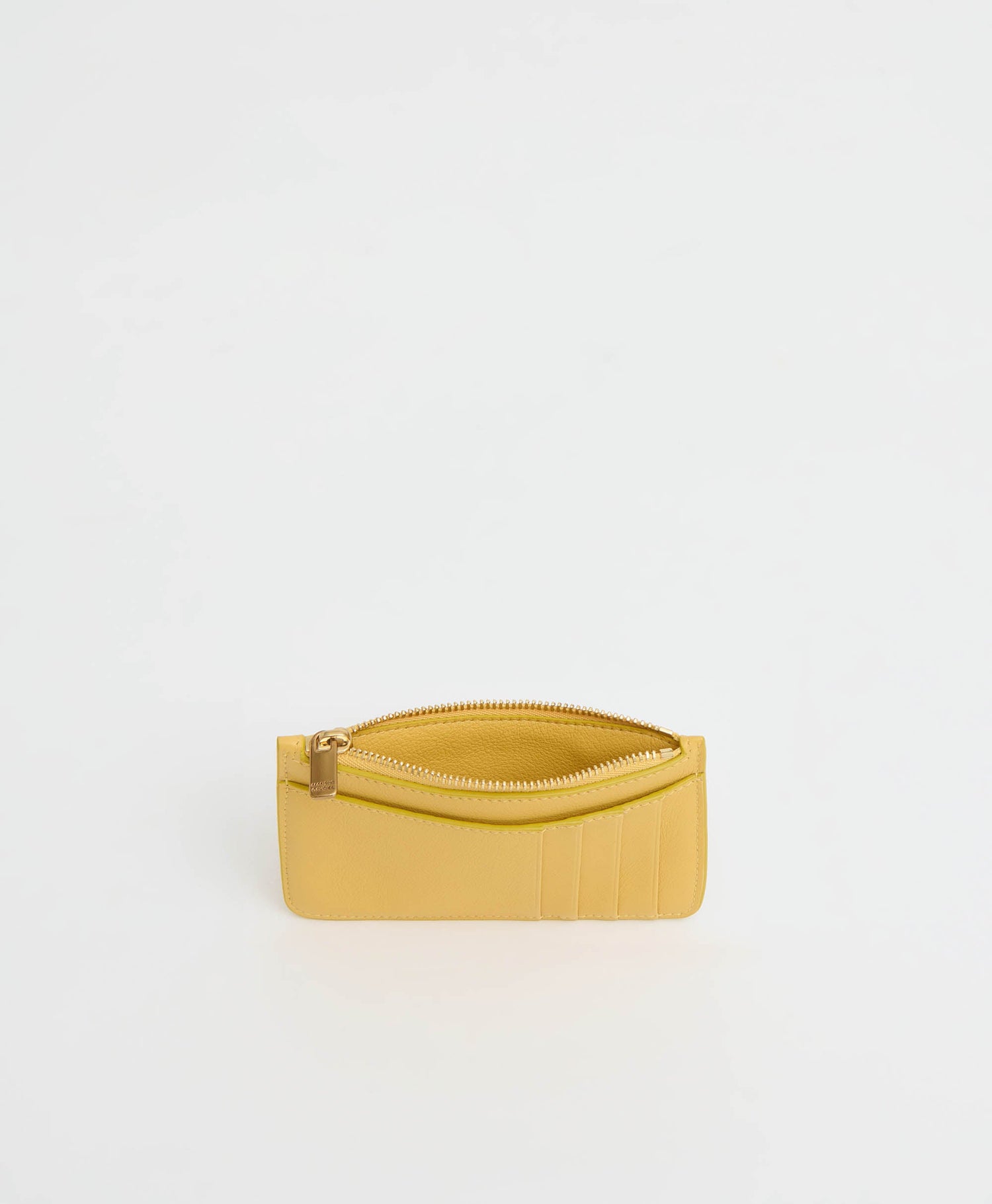 !!!Description---Constructed with durable Italian calf leather, the Zip Card Holder offers 4 vertical card slots, 1 large slit pocket, and 1 zip pocket, providing a sleek, versatile solution for cash, cards, and change.
